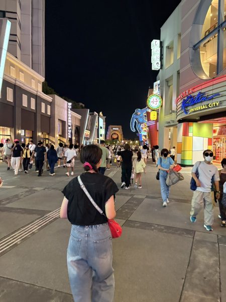 夜のUSJはほどんどの人が帰っていく中、入場ゲートに向かうのはとても