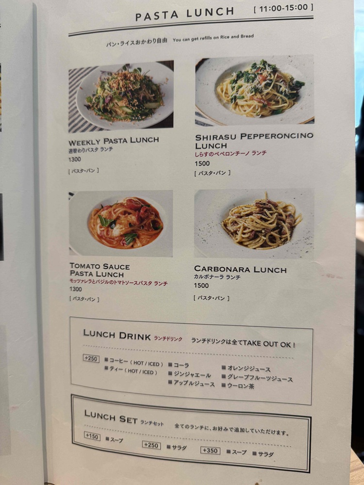 後でお茶に行くだろうと ここではパスタ・サラダ・コーヒーを注文
