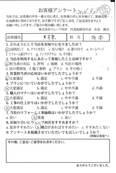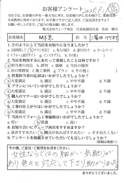 【西宮市甲東園 M様 洗面化粧台改修 担当:寺本】