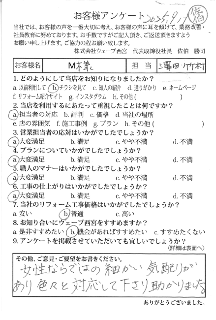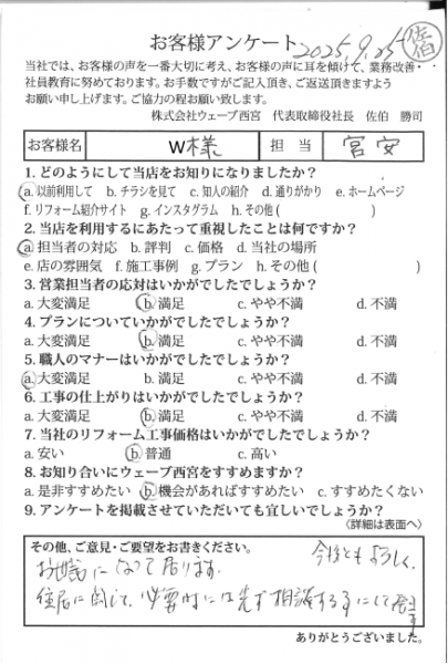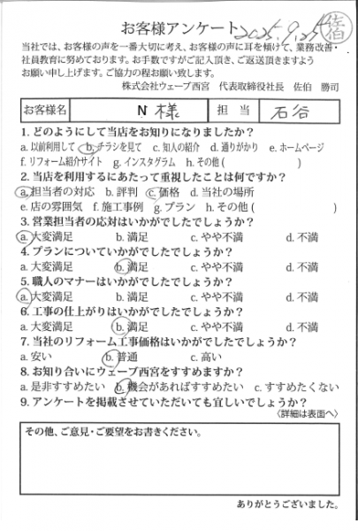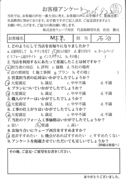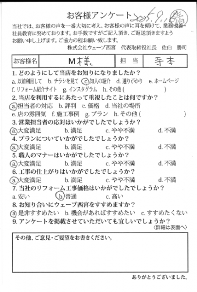 【西宮市熊野町 M様 マンション改装工事 担当:澤田・竹村】
