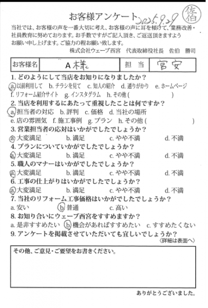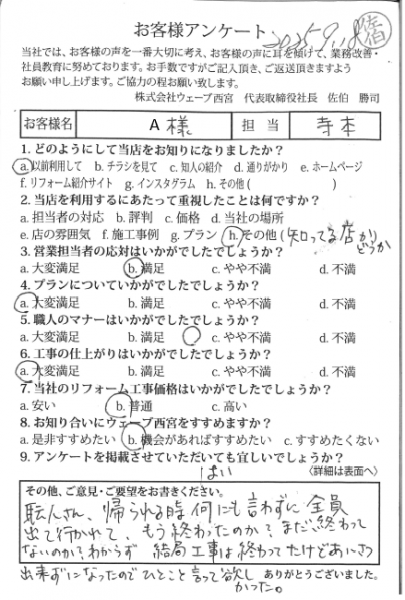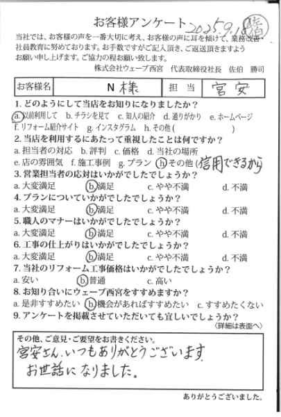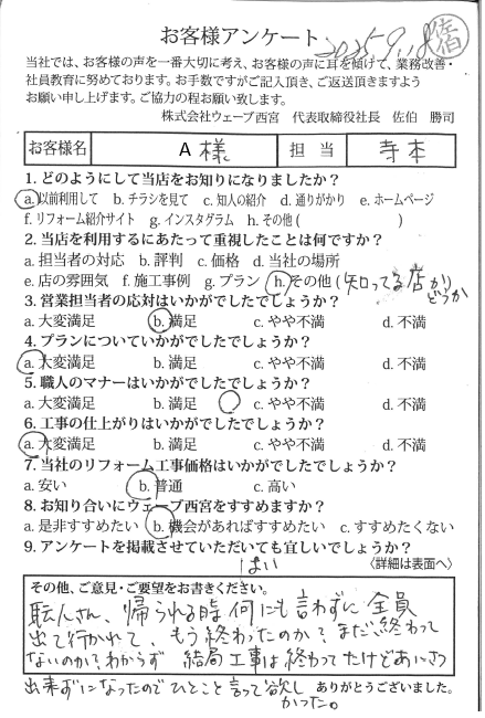 職人さんもとても早くきれいに仕上げて頂きました。大満足です。