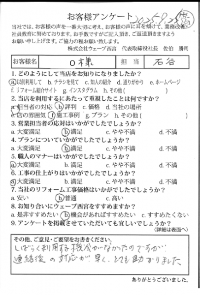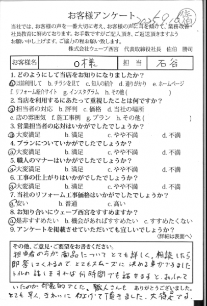 【西宮市津門大塚町 O様 トイレ取替工事 担当:石谷】
