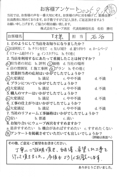 丁寧にご説明頂き、納得、希望した工事を行って頂きました。