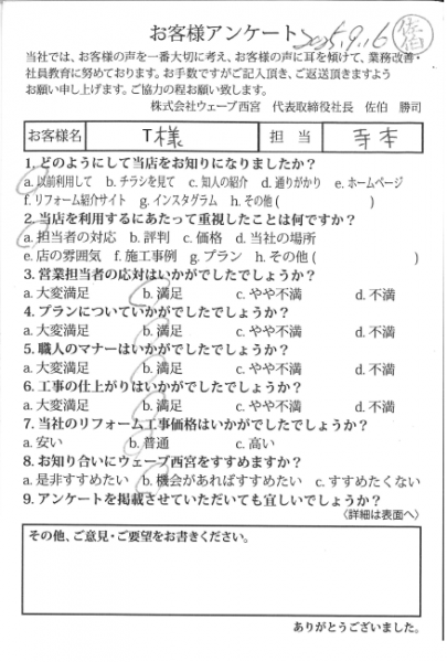 【西宮市里中町 T様 トイレリニューアル 担当:寺本】