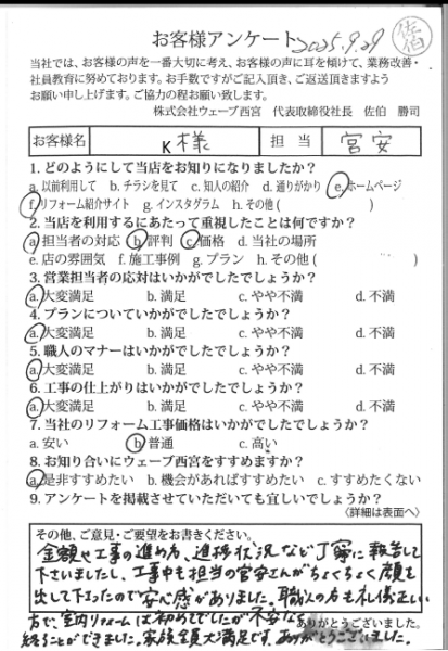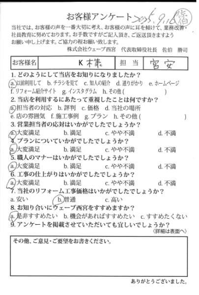 安心感がありました。職人の方も礼儀正しい方で、室内リフォームは