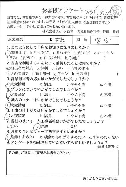 【神戸市東灘区 K様 畳・キッチン周辺工事 担当:宮安】