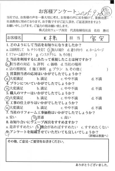 工事中も担当の宮安さんがちょくちょく顔を出して下さったので