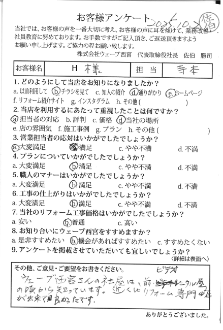 知っています。近くにリフォーム専門店の店が出来て良かったです。