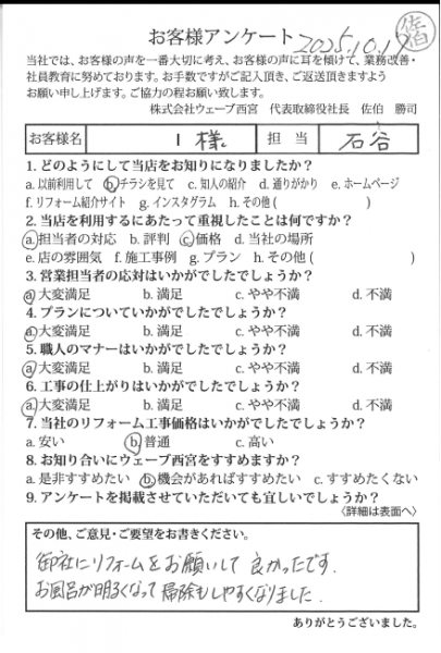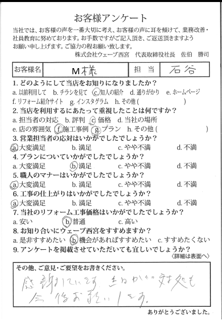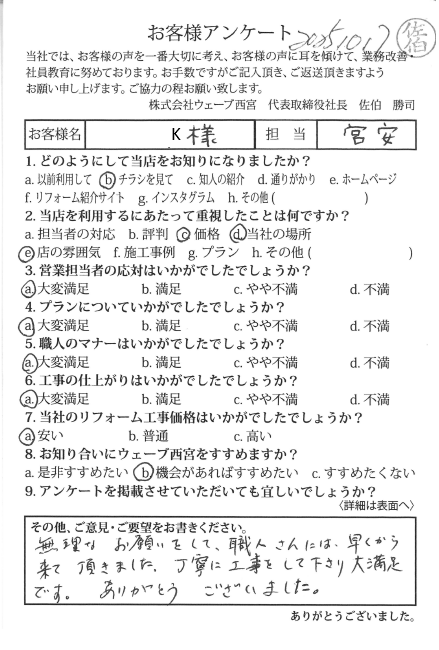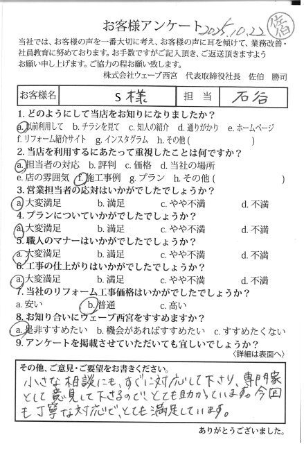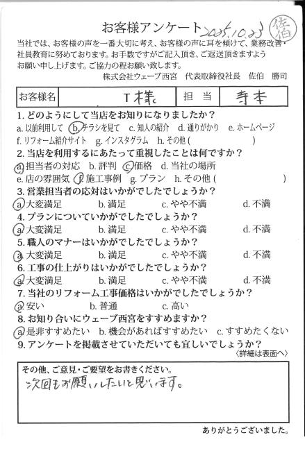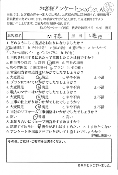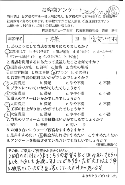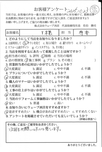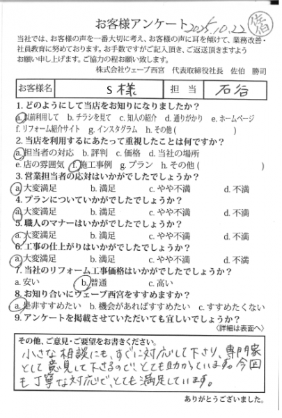 リフォームで利用させていただいた経験から改めてお願いしました。