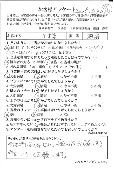 【神戸市灘区 Y様 各修繕工事 担当:石谷】