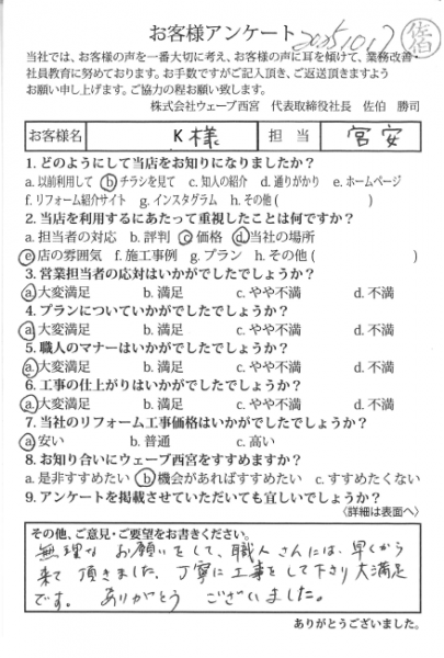 【西宮市上之町 K様 給湯器・浴室工事 担当:宮安】