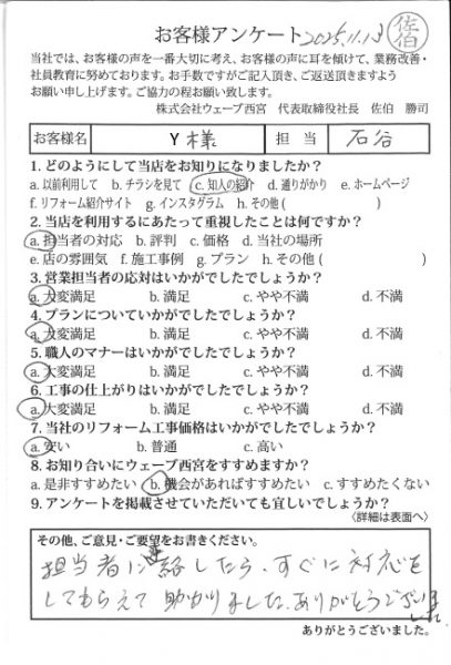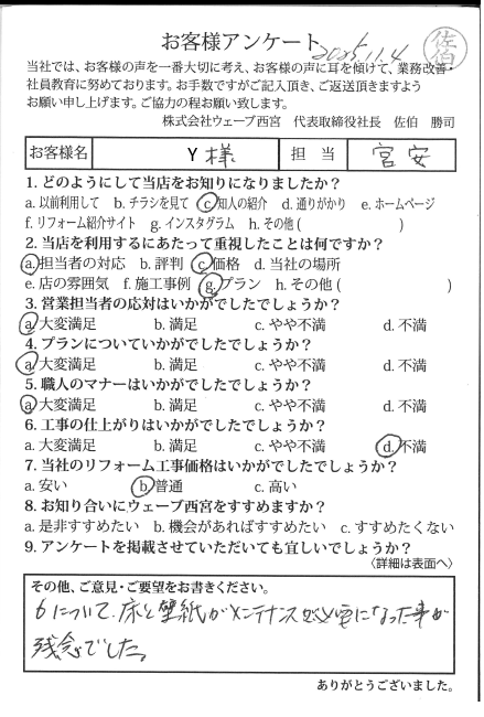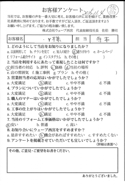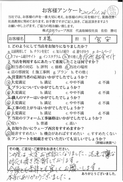 【西宮市東山台 Y様 マンション改装工事 担当:宮安】