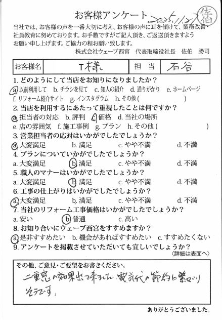 【西宮市上大市 T様 内窓取付工事 担当:石谷】