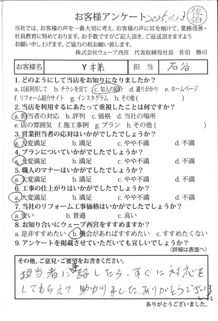 この度は大変お世話になりました。迅速丁寧な対応を頂き