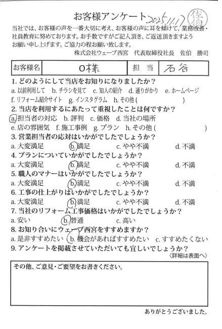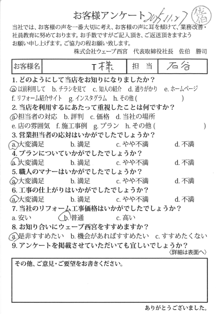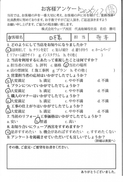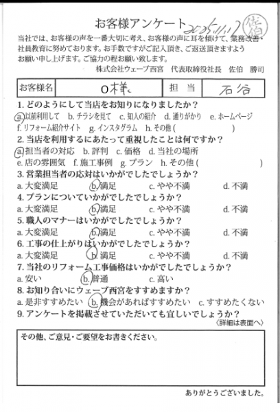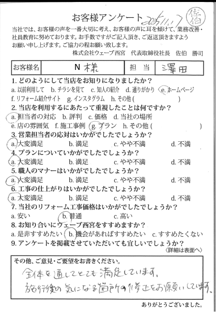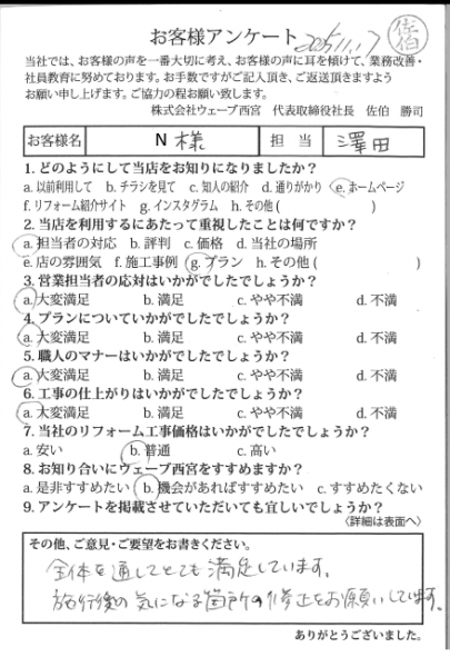 【西宮市堤町 N様 2F改装工事 担当:澤田】