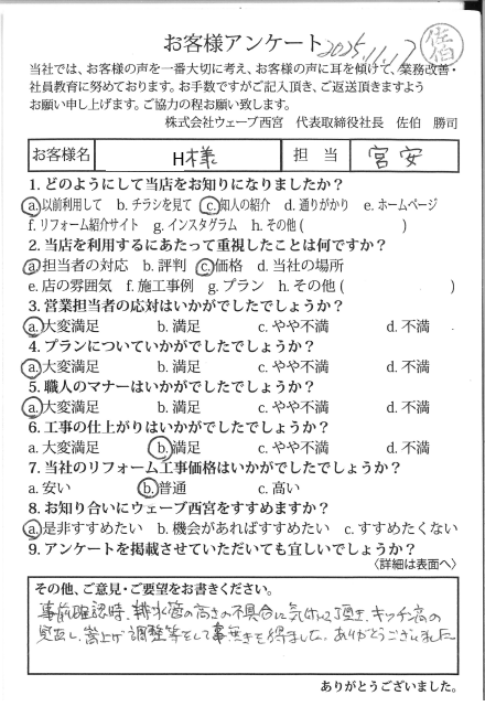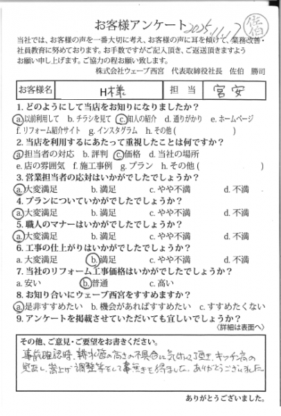 【西宮市芦原町 H様 キッチン交換工事 担当:宮安】