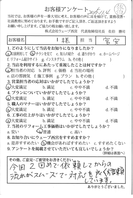 今回2回めで依頼してからの流れがスムーズで対応も良く信頼しています。