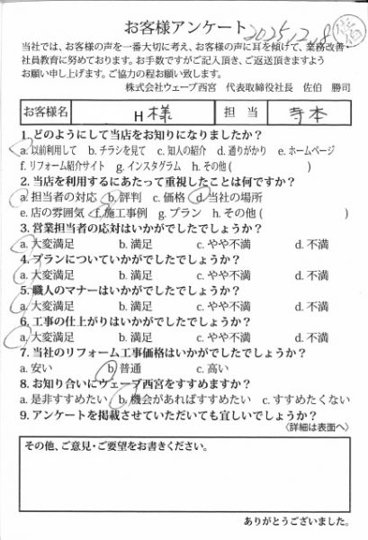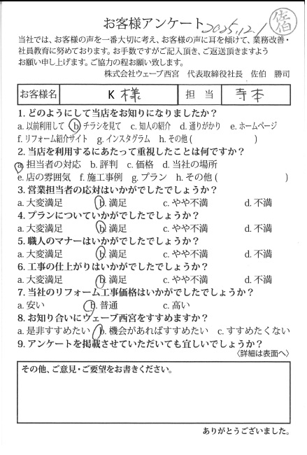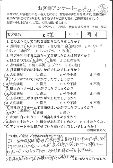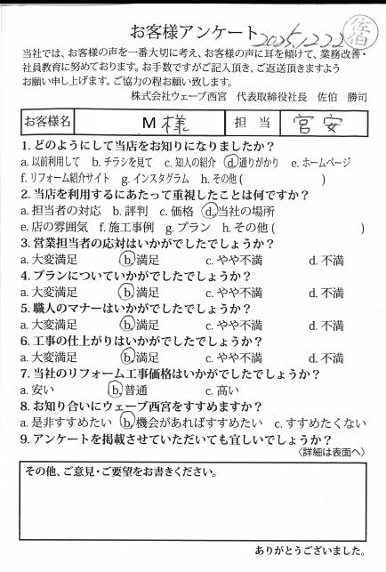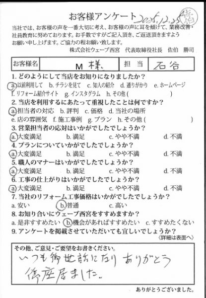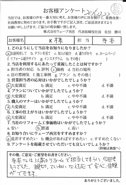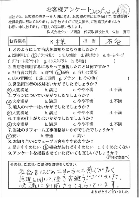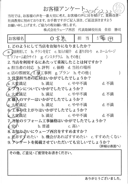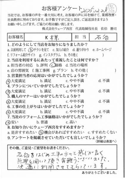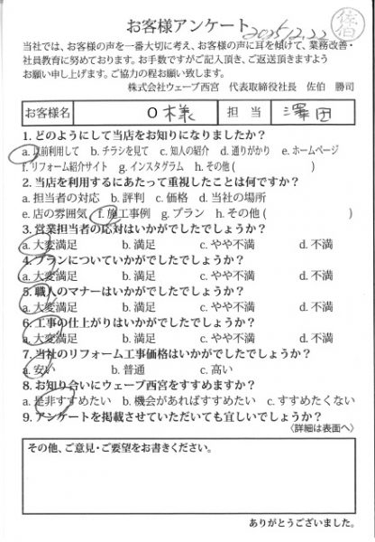 マナーも非常に良く感謝しております。また違うリフォームでも