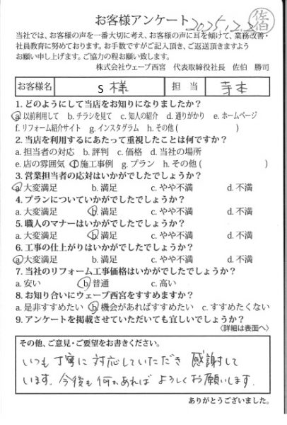 【西宮市戸崎町 S様 各修繕工事 担当:寺本】