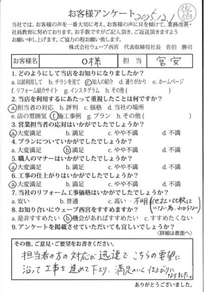 担当者の方の対応が迅速で、こちらの要望に沿って工事を