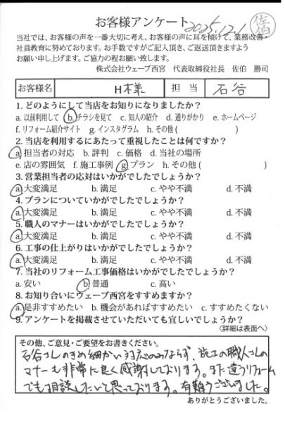 【西宮市西宮浜 H様 浴室・洗面工事 担当:石谷】