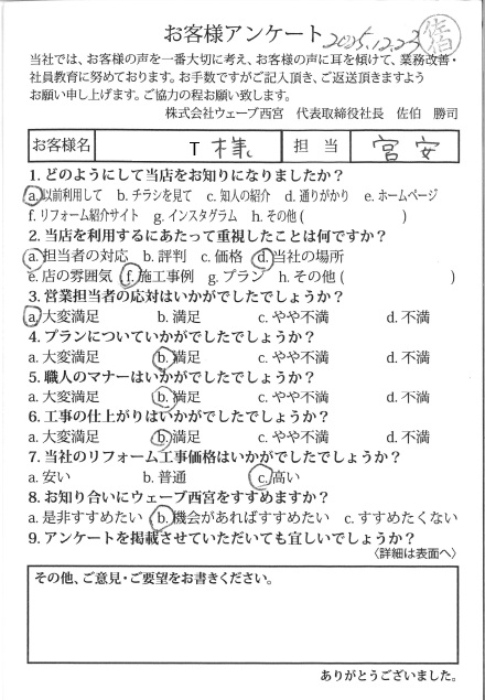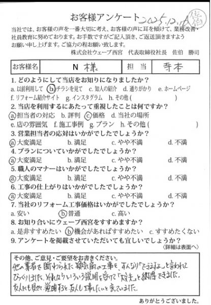 【西宮市津門呉羽町 N様 内装・レンジフードリニューアル 担当:寺本】
