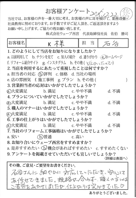【西宮市今津社前町 K様 トイレ・コンロ台改装工事 担当:石谷】