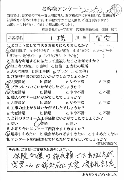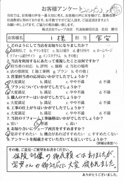 保険対象の御依頼ではありましたが、宮安さんの御対応に大変